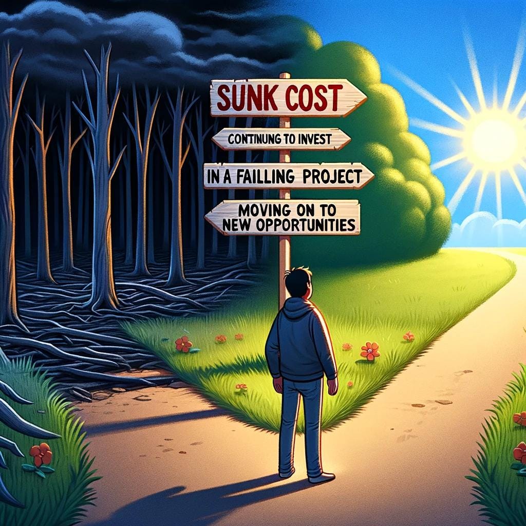 Your past is a sunk cost. The time you have spent in your life’s ventures like building a hobby, a career, company, or a relationship is a sunk cost. You can choose to invest more resources into your current state of things but it only makes sense if it brings you joy or you see future potential in it otherwise you are just growing the value of your sunk cost. I know it's not as easy as it sounds. People spend decades establishing their career and relationships. It's hard to cut loose because of the time, money and resource investment. It has defined your life so far.